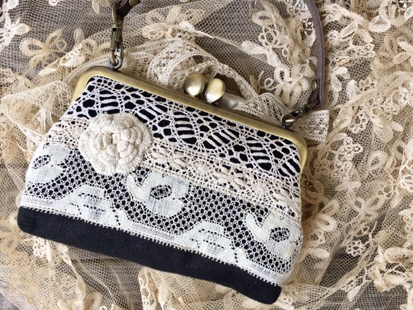 アンティークレースのがま口ポーチ(黒・ブラック)*170509